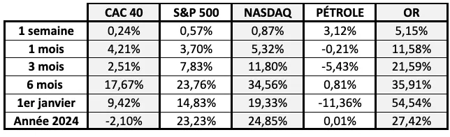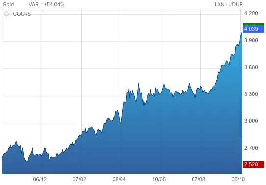 L’or poursuit ses plus hauts historiques en franchissant la barre des 4 000 $ l’once. Le métal jaune profite d’un double soutien : la baisse du dollar et le regain d’aversion au risque face à l’instabilité politique européenne. Il conserve sa fonction de couverture stratégique dans les portefeuilles.