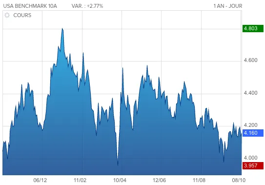 En Europe, la tendance est similaire : le Bund à 10 ans s’établit autour de 2,35 %, tandis que le rendement de l’OAT française a légèrement remonté à 3,15 % après la démission de Sébastien Lecornu.
